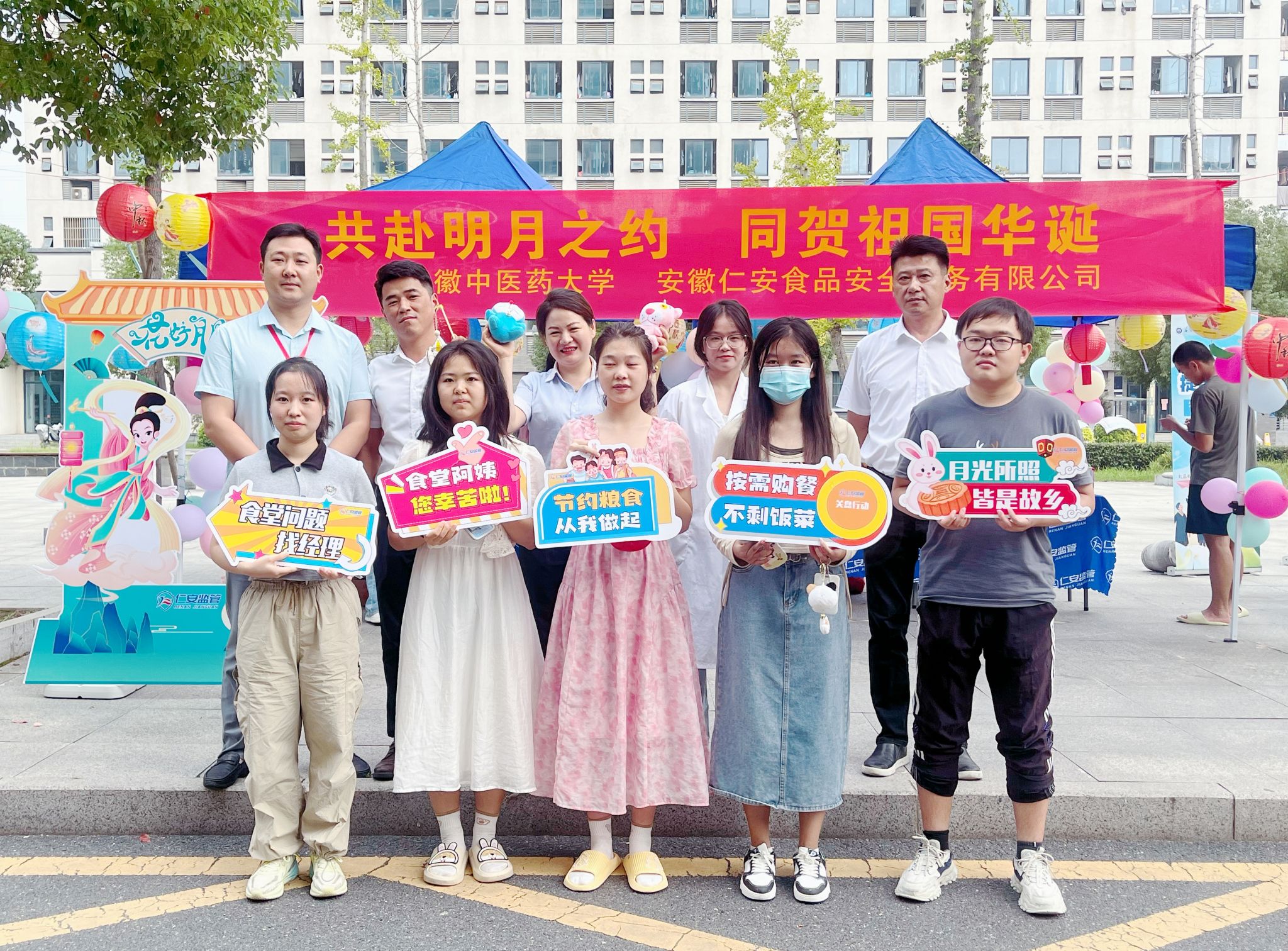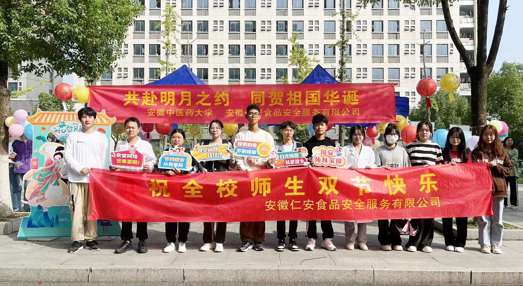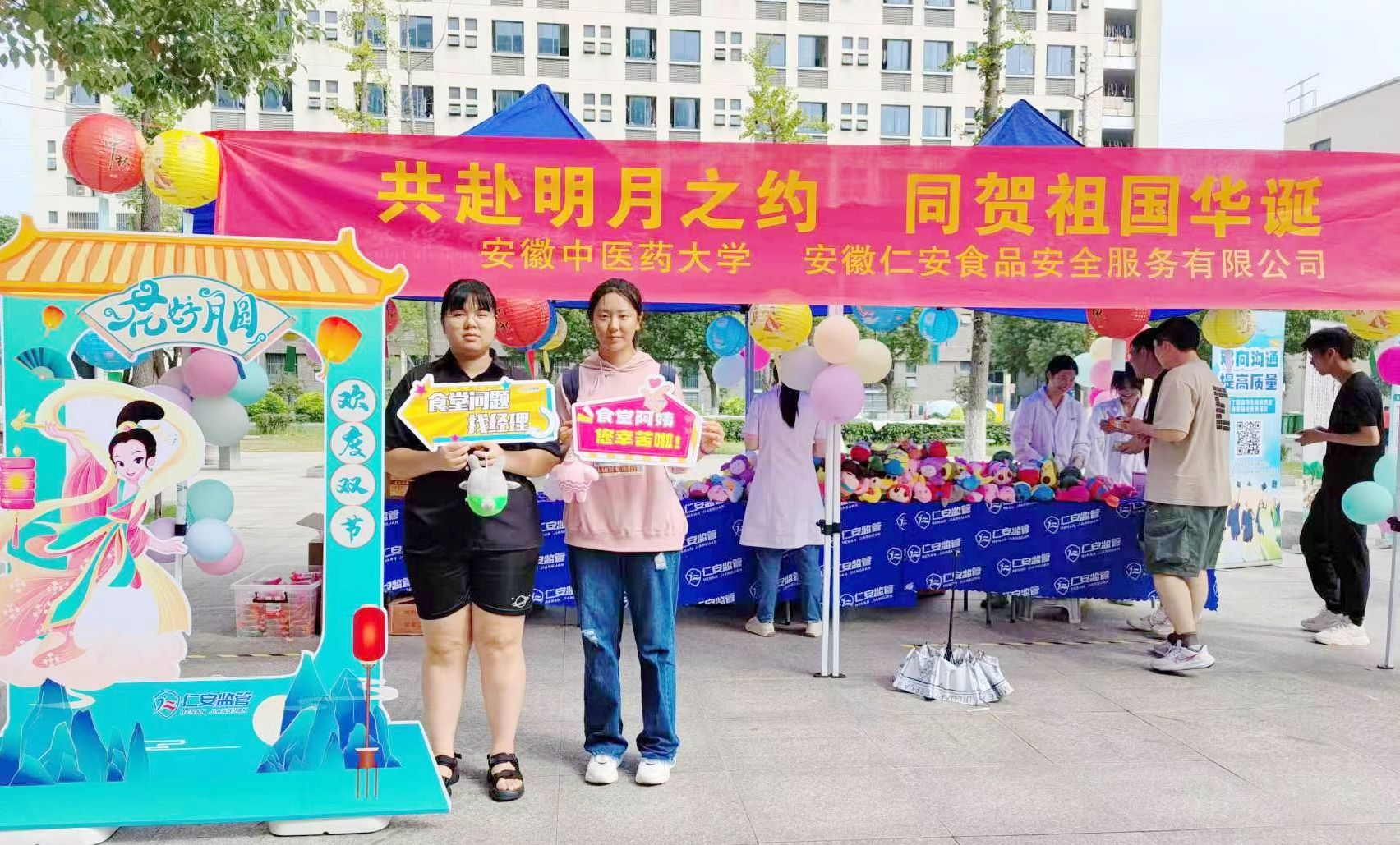 为了丰富同学们的校园生活,提高他们的食品安全意识和对投诉渠道的认知,近日,学校总务处联合校团委学生权益维护部、仁安监管举办了一场主题为“共赴明月之约 同贺祖国华诞”的中秋国庆双节活动。