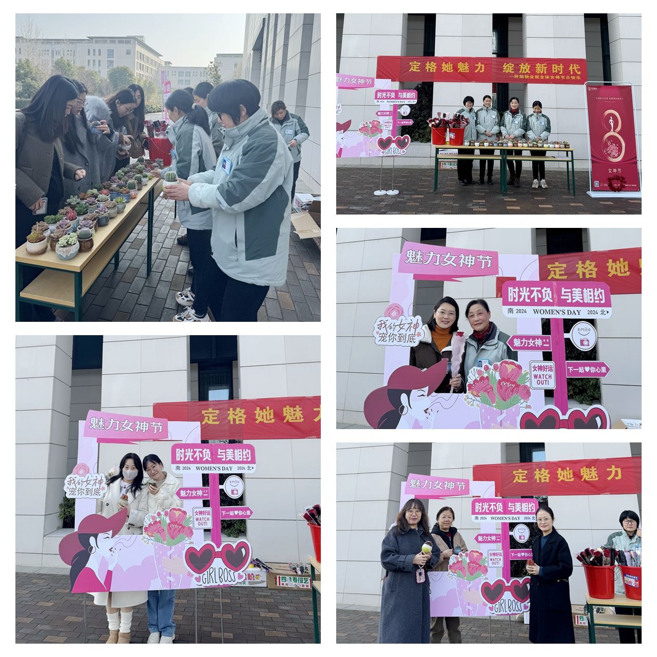 此次活动,在学校图书馆北广场门口,向我校广大女师生们发放“多肉”及物业服务人员手工制作的玫瑰花束,表达对我校全体女同胞的“三八”节日敬意与问候,并送上美好的节日祝福。