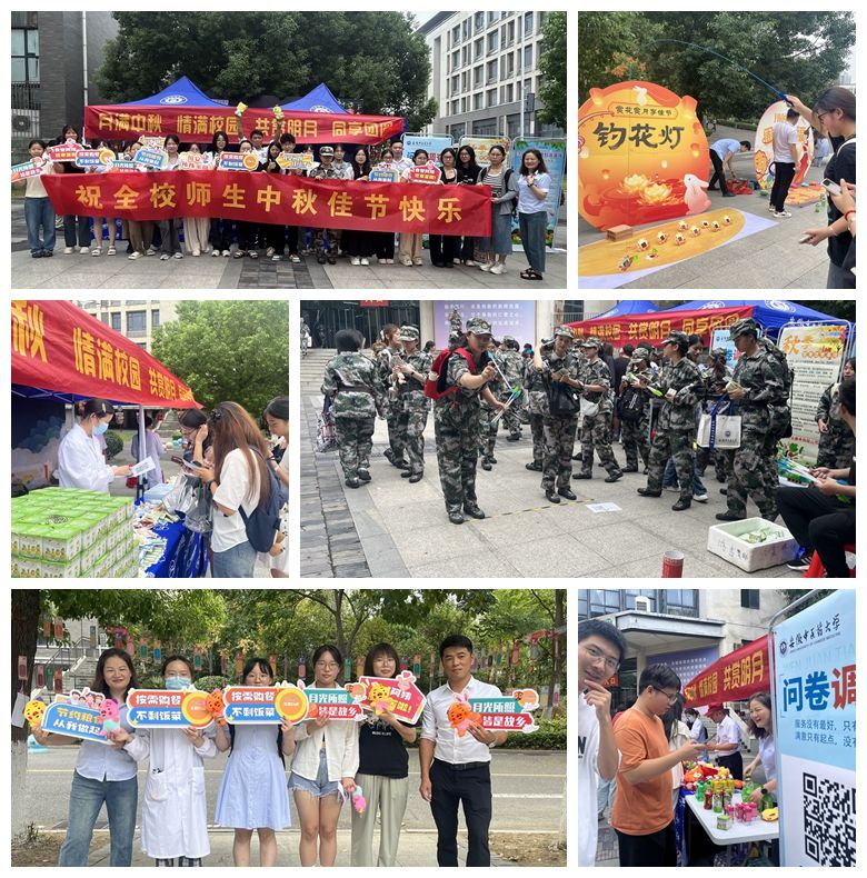 9 月 14 日,少荃湖校区北食堂广场和梅山路校区食堂成为欢乐的海洋,猜灯谜、钓花灯、套圈、投壶等传统游戏吸引了众多师生的踊跃参与。